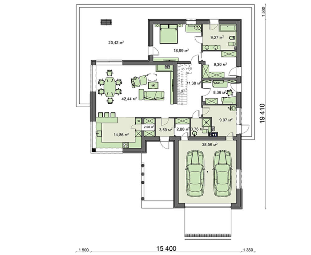 Проект содержит три раздела – Архитектурный, Конструктивный и Инженерный (Водоснабжение, Отопление, Вентиляция, Канализация, Электроснабжение) + Пояснительная записка