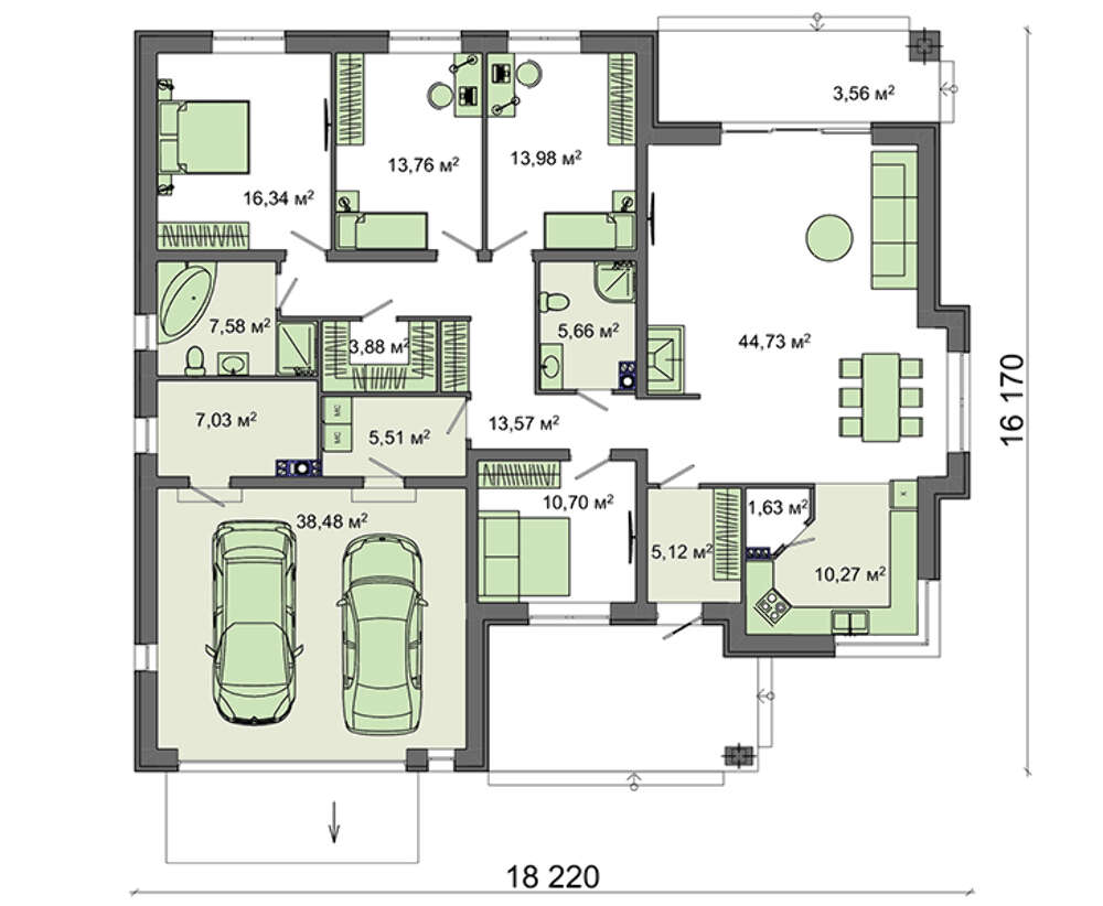 Проект содержит три раздела – Архитектурный, Конструктивный и Инженерный (Водоснабжение, Отопление, Вентиляция, Канализация, Электроснабжение) + Пояснительная записка
