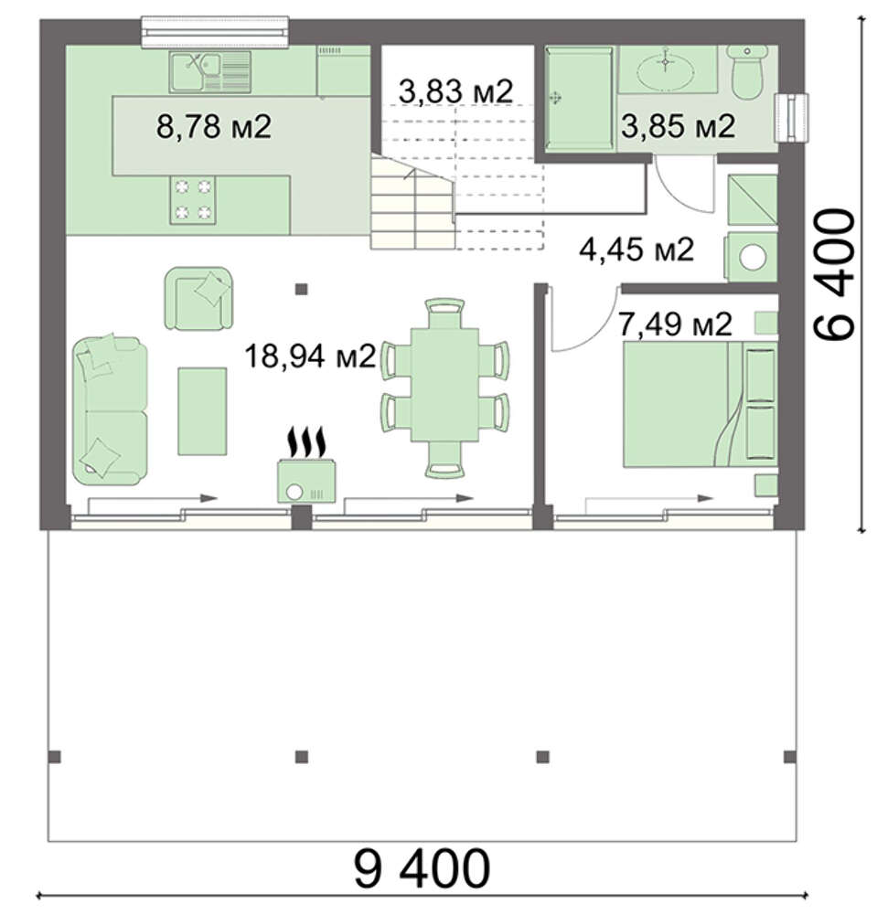 | Угол наклона кровли: | 38 ° |